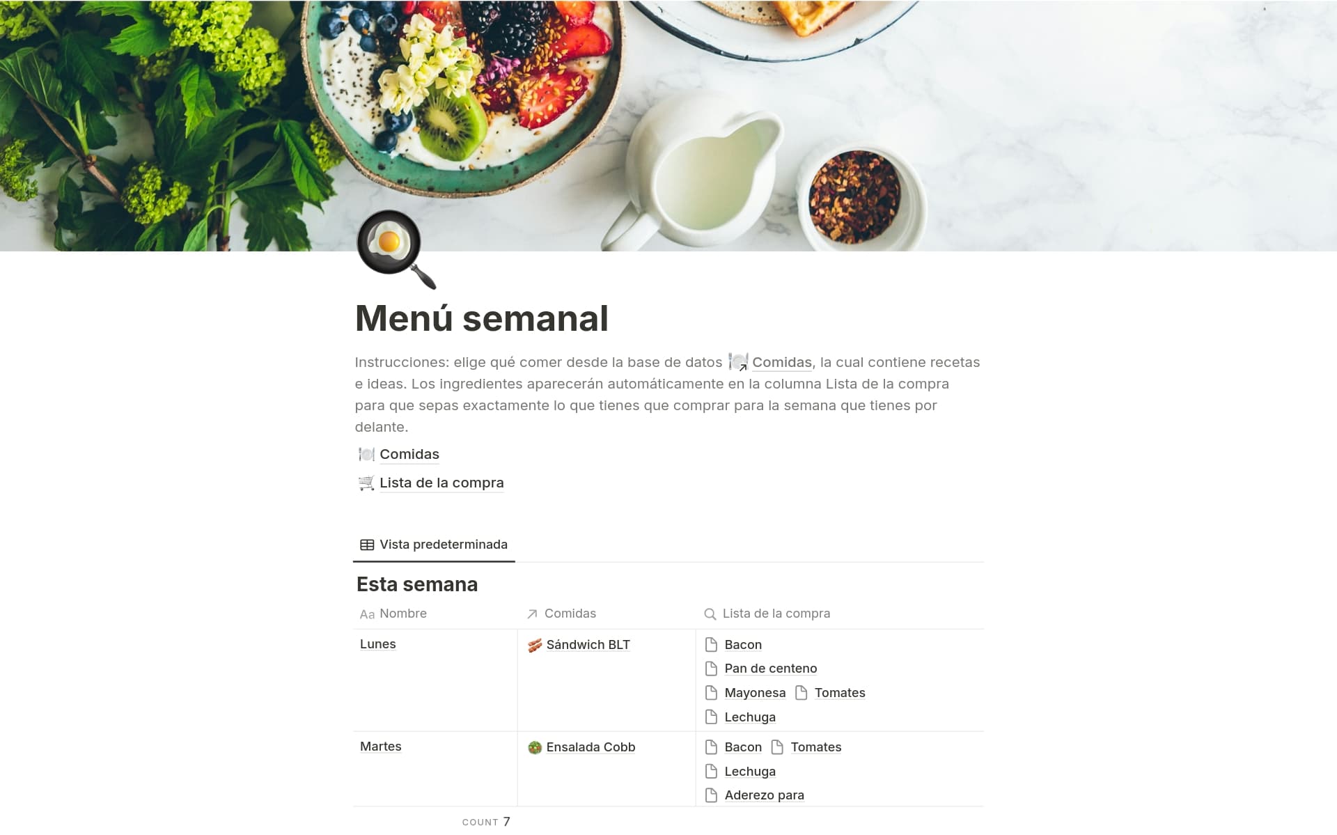 Captura de pantalla de la colección Tu caja de recetas creada por Notion